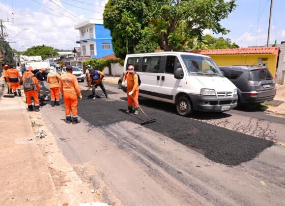 Força-tarefa faz operação tapa-buraco nas ruas de Manaus após chuvas