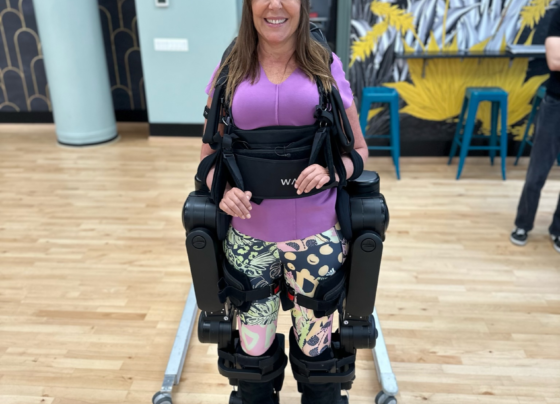 Senadora Mara Gabrilli testa exoesqueleto antes de chegar ao Brasil;vídeo