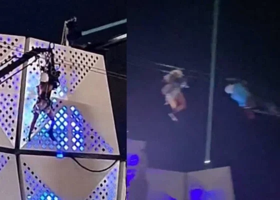 Vídeo: mulher fica presa em tirolesa do Rock in Rio e resgate viraliza