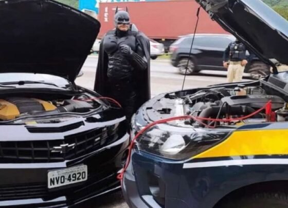 Batmóvel fica sem bateria e PRF é chamada para ‘salvar’ o Batman