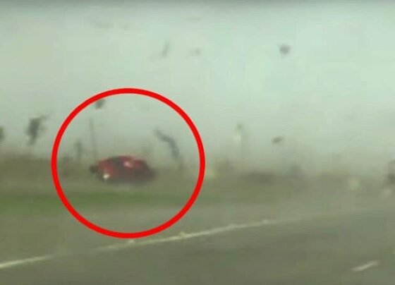 Viralizou: carro é arremessado por tornado e volta à pista