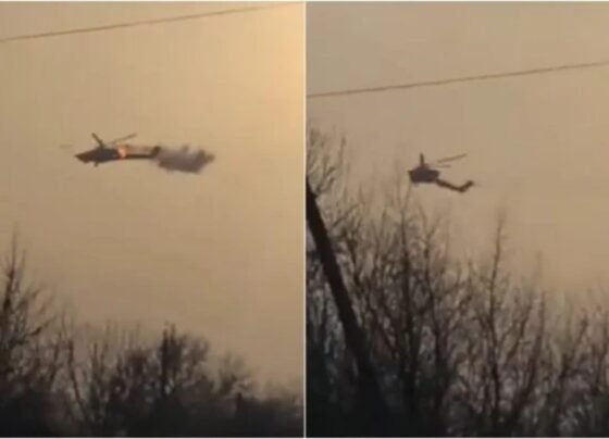 Imagens que viralizaram nas redes sociais mostram helicóptero russo sendo abatido após disparo de míssil Starstreak de fabricação britânica, em…