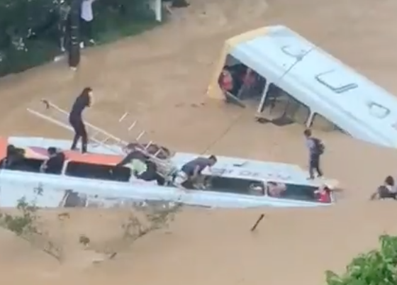 Imagens mostram ônibus com passageiros arrastados em Petrópolis