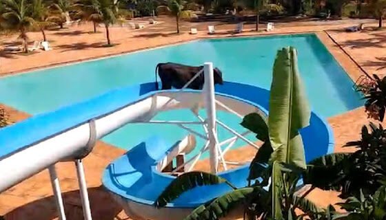 Vídeo de boi descendo toboágua viraliza; assista
