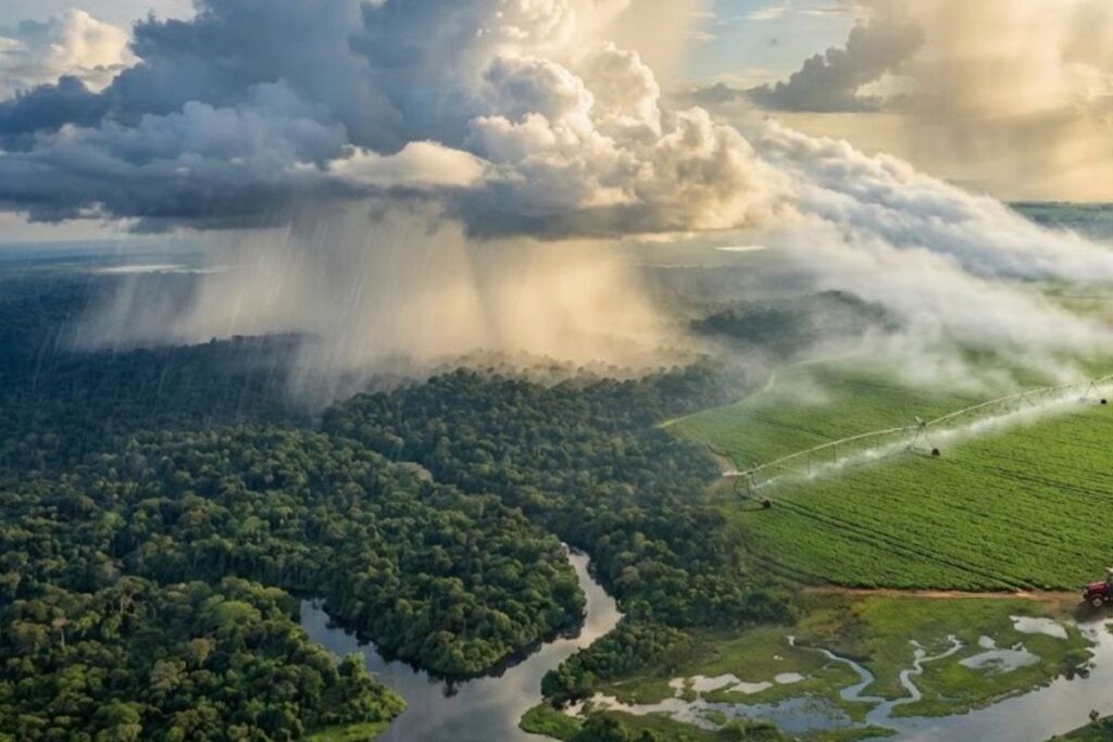 Cientistas calculam que a chuva gerada pela Amazônia vale mais de R$ 100 bilhões por ano, revela estudo que mostra cada hectare preservado produz milhões de litros de água e sustenta 85% da agricultura brasileira dependente de precipitação.