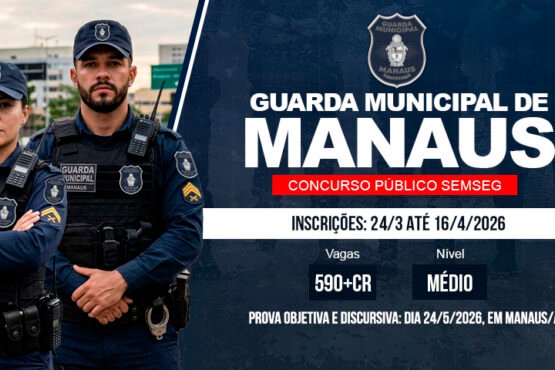 A Prefeitura de Manaus abriu as inscrições para o concurso público da Guarda Municipal, com oferta de 590 vagas para
