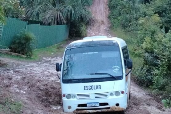 Vídeo: Ônibus escolar fica atolado em lamaçal em estrada intransitável