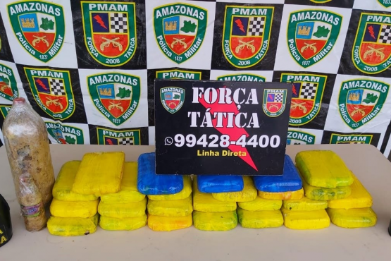 A Polícia Militar do Amazonas apreendeu 25 kg de pasta base de cocaína com três adolescentes, na virada do ano.