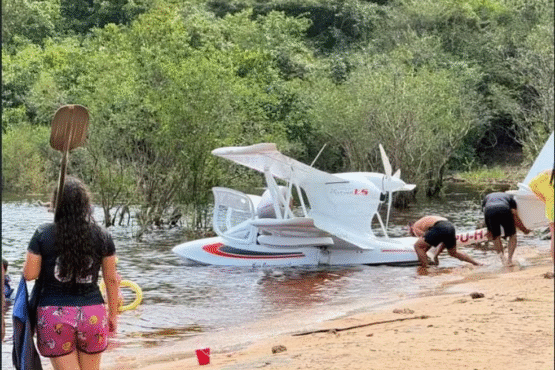 Avião cai no Rio Negro e deixa dois feridos na