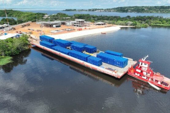 Localizado em Silves, no interior do Amazonas, o projeto recebeu seus primeiros módulos do pipe rack. Equipamentos importados da Coreia
