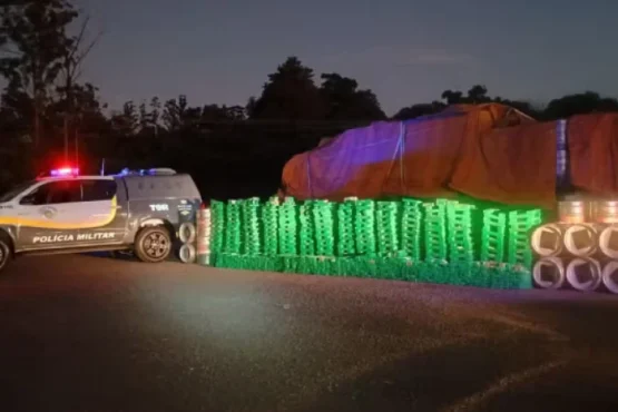 Um motorista de caminhão foi preso em flagrante com cerca de uma tonelada de maconha escondida em barris de chope