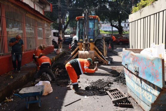 Prefeitura de Manaus desobstrui bueiros para evitar alagamentos no Centro