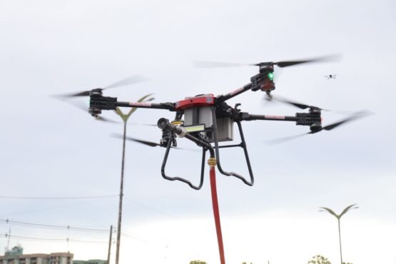 O Corpo de Bombeiros do Amazonas adquiriu o primeiro drone de combate a incêndio do Brasil. O Governo do Estado