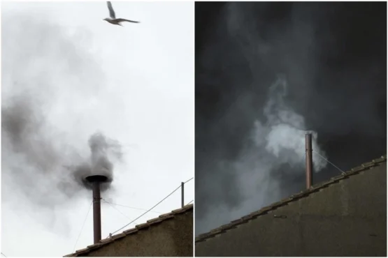 Conclave seguirá até que um dos cardeais obtenha 89 votos. A fumaça preta que saiu da chaminé da Capela Sistina,