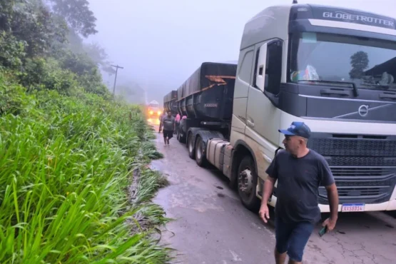 Acidente com três caminhões bloqueia a BR-174 no Amazonas