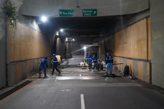 A Prefeitura de Manaus iniciou na madrugada deste sábado (15), a colocação das tampas na passagem subterrânea do complexo viário