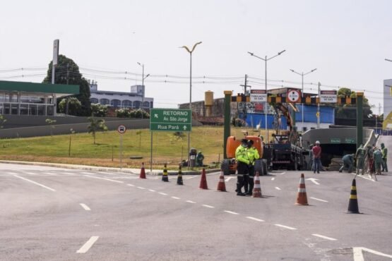 A Prefeitura de Manaus informa aos motoristas sobre a interdição temporária da passagem subterrânea do complexo viário Roberto Campos, na Avenida
