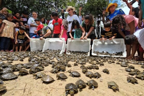 Trabalho é desenvolvido em duas comunidades no Km 260 da BR-319Mais de 4,9 mil filhotes de quelônios foram soltos na
