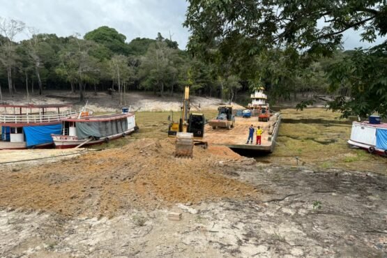 Maquinários são transportados por balsa para recapear as ruas da localidade do Rio Tarumã-Açu Pela primeira vez, a comunidade Nossa