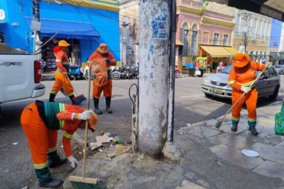 A Prefeitura de Manaus intensifica a limpeza nas ruas do Centro histórico, garantindo um ambiente organizado e higiênico para moradores e visitantes.