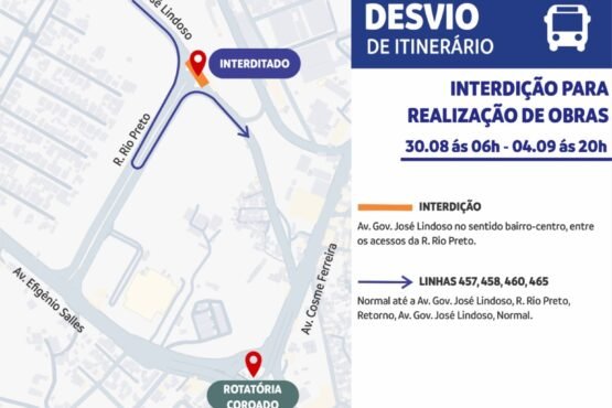 A partir desta sexta-feira (30), o trecho da avenida Governador José Lindoso, em frente à rua Rio Preto, será interditado