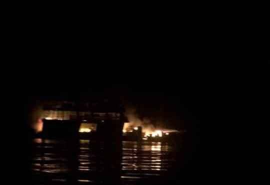 Barco pega fogo no meio do Rio Negro próximo Manaus;vídeos