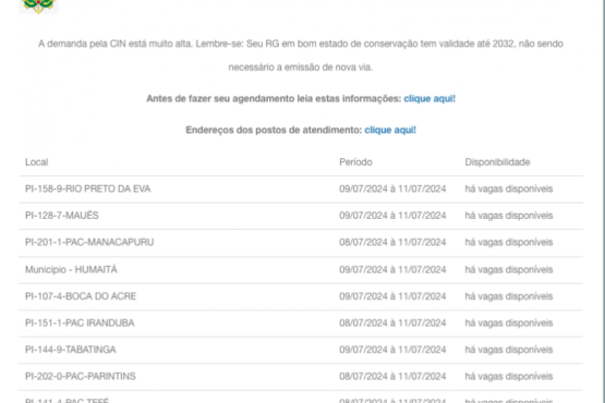 Operação Marca D’água:site SSP-AM não apresenta link para agendar Identidade