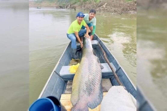 Pescadores fisgam pirarucu de 130 kg e 2 metros