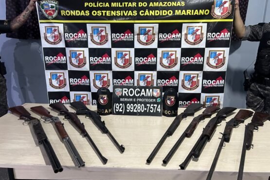 Uma patrulha da Rondas Candido Mariano (Rocam), da Polícia Militar do Amazonas, recuperou nove armas de longo alcance roubadas do
