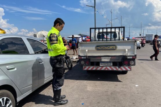 Agentes controlam trânsito no embarque para Parintins na Manaus Moderna