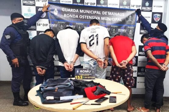 Equipe da Romu prende suspeitos armados durante patrulhamento, em Manaus