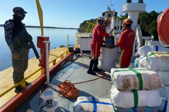 Agentes embarcados na Base Arpão 2, estacionada no Rio Negro apreenderam aproximadamente 1,5 tonelada maconha tipo skunk, avaliada em mais