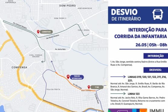 A Prefeitura de Manaus, por meio do Instituto Municipal de Mobilidade Urbana (IMMU), vai alterar parte do itinerário do trânsito