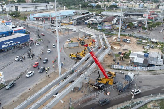 Viaduto da Bola do Produtor finaliza colocação de vigas