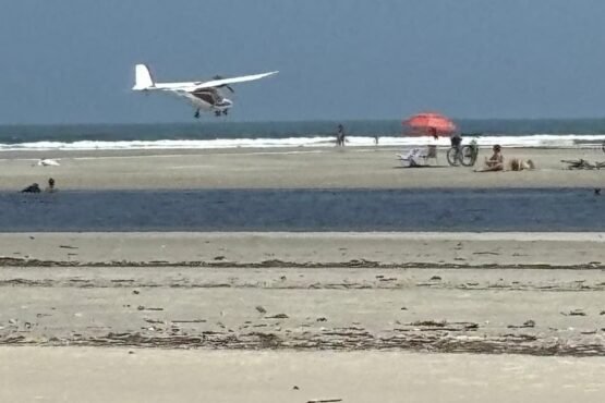 Avião pousa na praia e quase atinge banhistas; assista vídeo