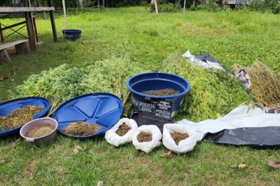 Três pessoas foram presas e cerca de 1,8 mil pés de maconha, 66 quilos de pasta-base do tipo maconha, um