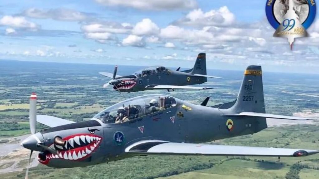 Dois aviões da Força Aérea colombiana se chocaram no ar durante um treino neste sábado (1), deixando um morto. O acidente envolveu dois aviões T-27 Tucano, modelo produzido pela Embraer.