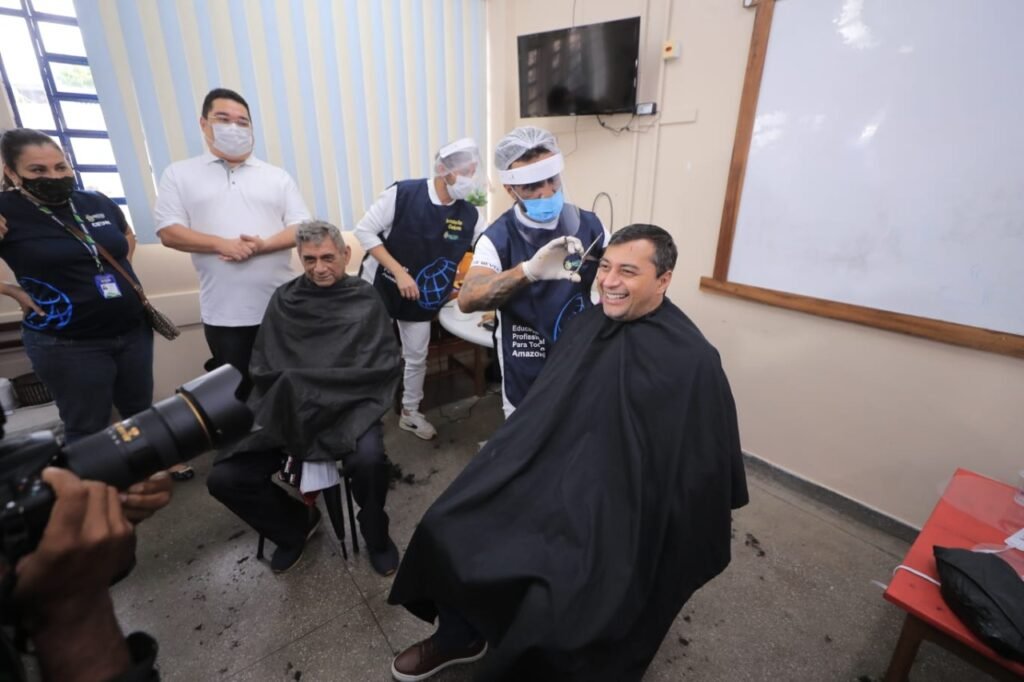 “Determinei à Secretaria de Segurança Pública que entrasse nas comunidades, que conversasse com as lideranças comunitárias e com os moradores, para entender que caminhos a gente vai seguir para melhorar a segurança e dar tranquilidade para essas pessoas. Só isso não é suficiente, outros serviços são importantes. Todo o governo está aqui na comunidade para fazer esse atendimento”, disse o governador Wilson Lima, após cortar o cabelo com uma das estudantes do Centro de Educação Tecnológica do Amazonas (Cetam).