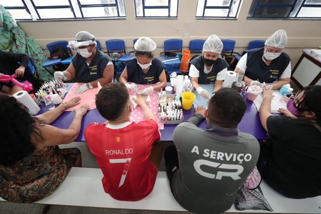 Das 8h às 16h, foram feitas vacinação contra a Covid-19, emissão de documentos de identidade, serviços gratuitos de embelezamento, como corte de cabelo e manicure.