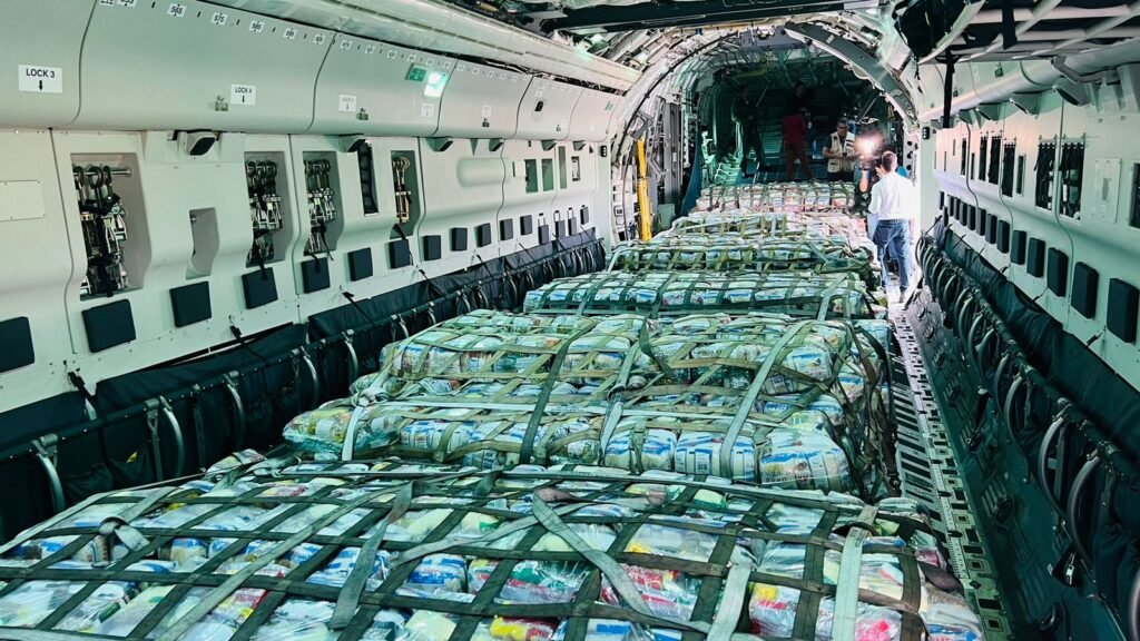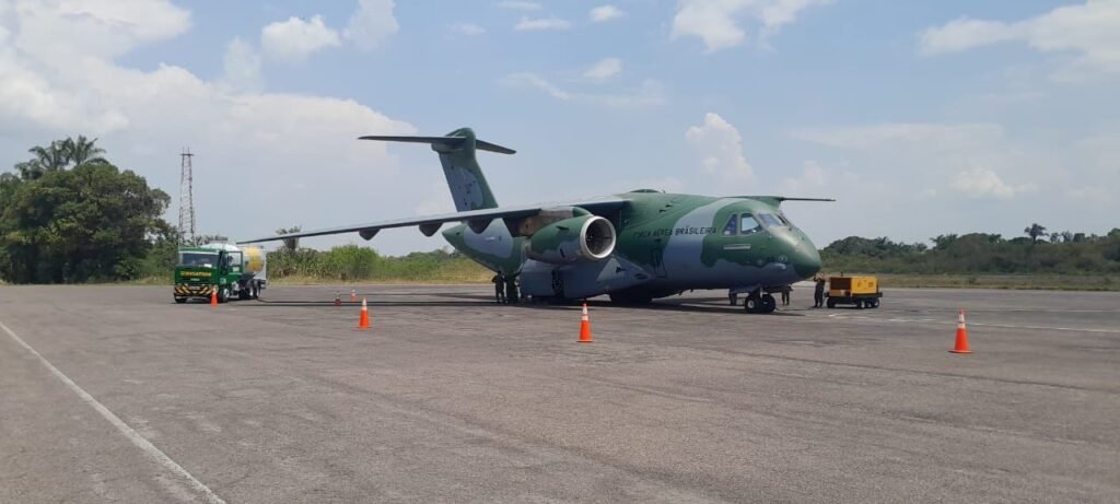 A partir da Base Aérea de Manaus partiu o primeiro avião cargueiro KC 390 Millennium, o maior da Força Aérea Brasileira (FAB), com 18 toneladas água potável e produtos necessários para o abastecimentos das populações mais atingidas pela estiagem.