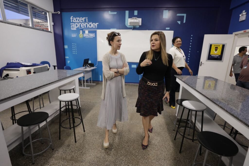 Desde 2019, mais de R$ 260 milhões já foram investidos nos Cetis. Com o valor, aproximadamente 13 mil estudantes foram beneficiados em todo o estado. A secretária de Educação do Amazonas, Kuka Chaves, recepcionou a comitiva no Ceti Dariana Correa Lopes, localizado no bairro Lago Azul, zona norte.