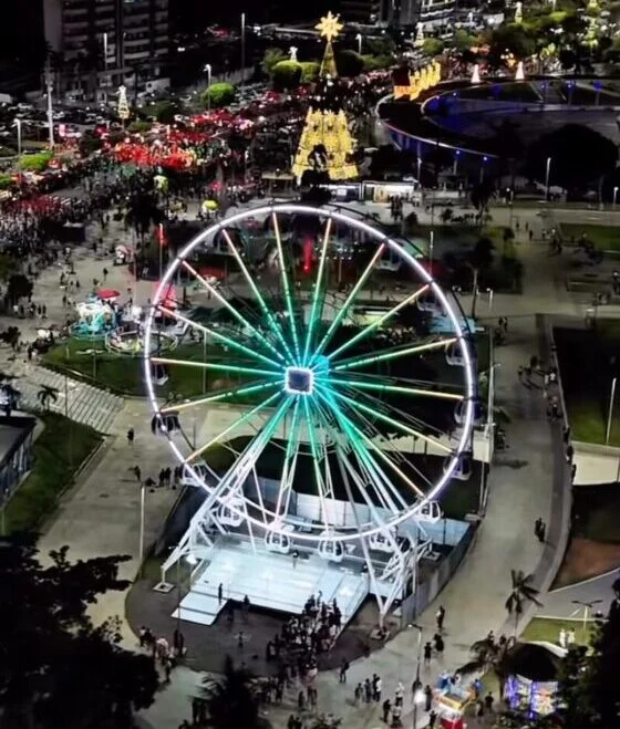 A roda-gigante segue em funcionamento como uma das principais atrações da programação natalina na Orla da Ponta Negra.