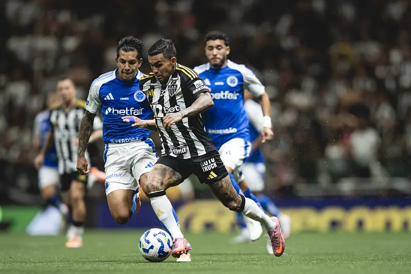 Atlético-MG e Cruzeiro empataram por 1 a 1 na noite desta quarta-feira na Arena MRV, pela 28ª rodada do Campeonato Brasileiro. Foi um clássico com entradas duras, jogadas disputadas e expulsão (Kaio Jorge, após fazer gesto de roubo para a arbitragem). O Cruzeiro abriu o placar com Matheus Pereira no começo do segundo tempo. O Galo empatou imediatamente, com Ruan Tressoldi.