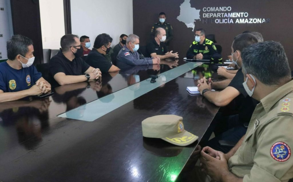 No município, o secretário reuniu com policiais civis e militares, bombeiros militares, policiais federais, Exército Brasileiro, além da Marinha e Forças Militares da Colômbia, em Letícia.