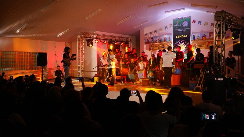 A Prefeitura de Manaus, por meio da Secretaria Municipal de Educação (Semed), realizou, na noite desta sexta-feira, (10), o espetáculo “Lendas” em comemoração aos 20 anos de existência do Grupo de Percussão Alternativa Curumim na Lata, no auditório do Centro Municipal de Arte-Educação (Cmae) Aníbal Beça, localizado no bairro São José 3, zona Leste.