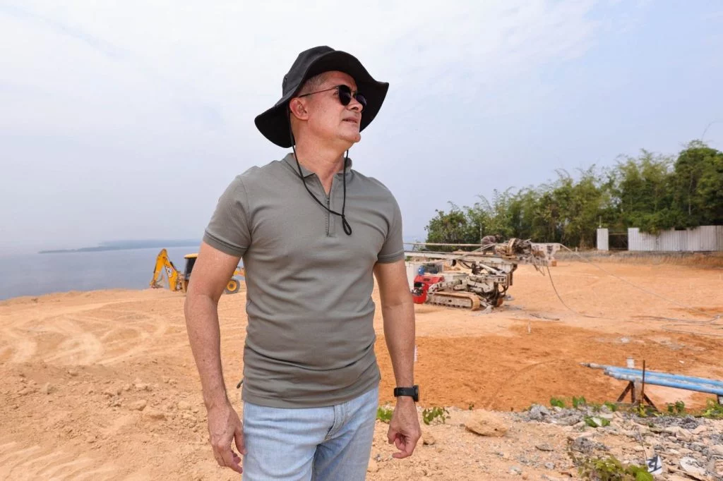 O prefeito de Manaus, David Almeida, inspecionou, nesta quarta-feira (14), o andamento das obras do parque Encontro das Águas Rosa Almeida, localizado no bairro Colônia Antônio Aleixo, zona Leste, que será o novo parque urbanístico da capital.