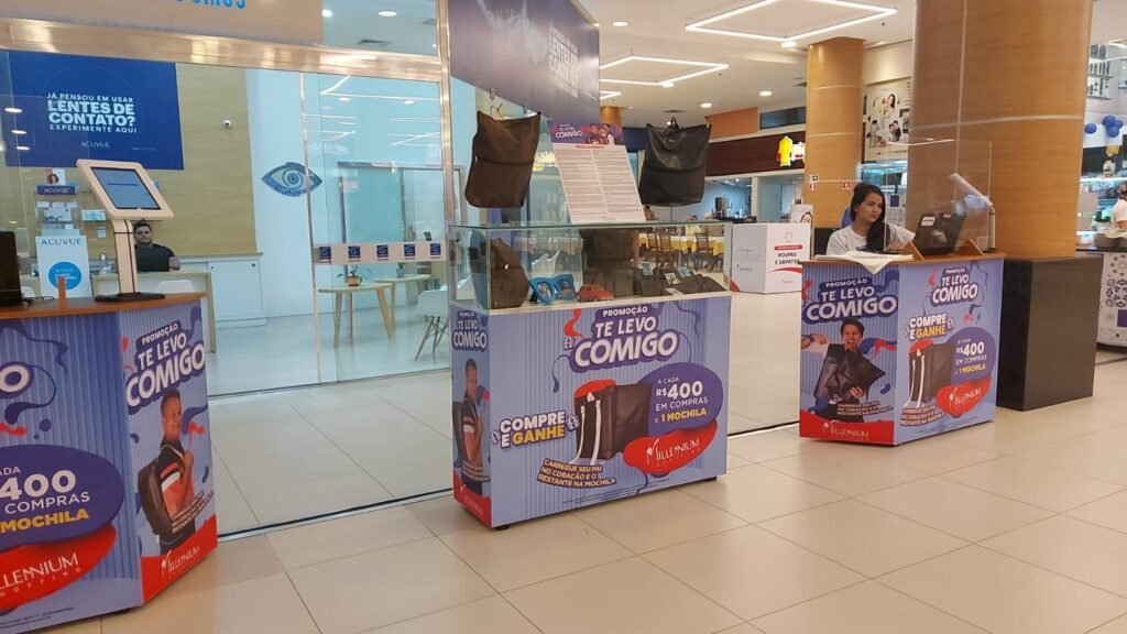 O  Dia dos Pais está chegando e para celebrar a data o Millennium Shopping acaba de lançar a campanha “Te Levo Comigo”, que vai premiar os pais com mochila para notebook. Juntando R$ 400 em compras nas lojas participantes, o cliente apresenta as notas fiscais e retira o brinde no balcão localizado próximo da praça de alimentação. A campanha vai até o dia 14 de agosto ou enquanto durarem os estoques.