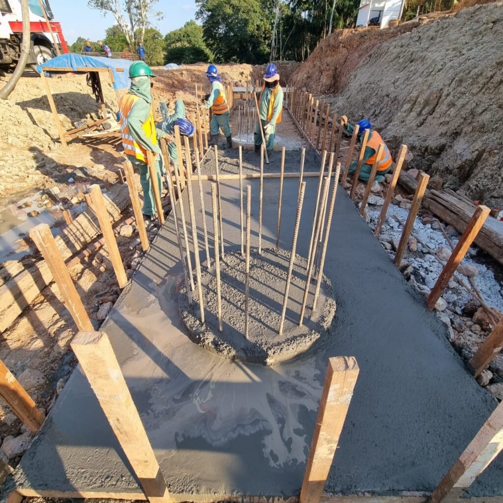 Obras na ponte sobre o Rio Curuçá têm apenas as colunas de concreto construídas – dois anos após quedas.