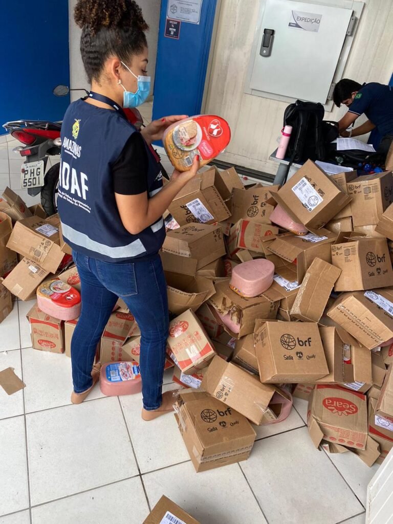 Fiscais da Agência de Defesa Agropecuária do Estado do Amazonas (Adaf) apreenderam, nesta terça-feira (7), quase duas toneladas de produtos cárneos vencidos e aves abatidas em desacordo com as normas sanitárias vigentes. As ações aconteceram em uma unidade de beneficiamento de produtos cárneos, no bairro Cidade Nova, na zona norte, e em um abatedouro clandestino de aves, suínos, ovinos e caprinos, no bairro Alvorada 2, zona centro-oeste de Manaus.