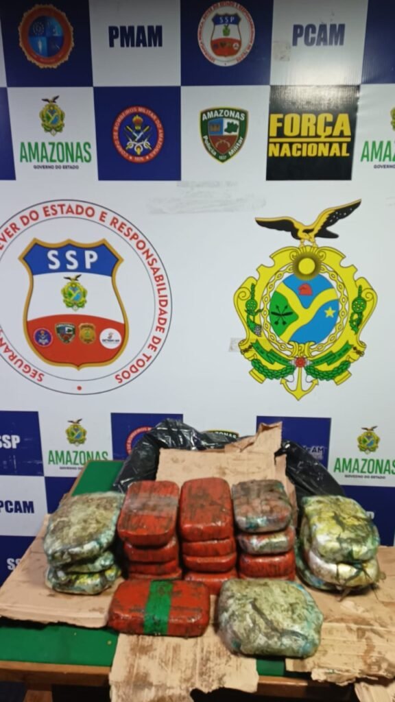 A apreensão ocorreu durante o cumprimento da operação Hórus/Fronteira Mais Segura, coordenada pela Secretaria de Segurança Pública do Amazonas (SSP-AM), na noite de quinta-feira (17). Ainda durante a ação, um homem de 33 anos foi preso por tráfico de drogas.